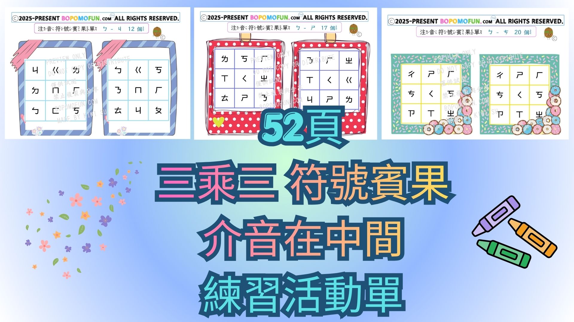 🌟結合重複練習與趣味設計的注音符號學習單。 ✔ 多種人物角色,提升學習興趣 ✔ 結合著色活動,增加參與感 ✔ 在遊戲中自然複習已學注音符號 ✔ 給特別喜愛畫畫與著色的孩子