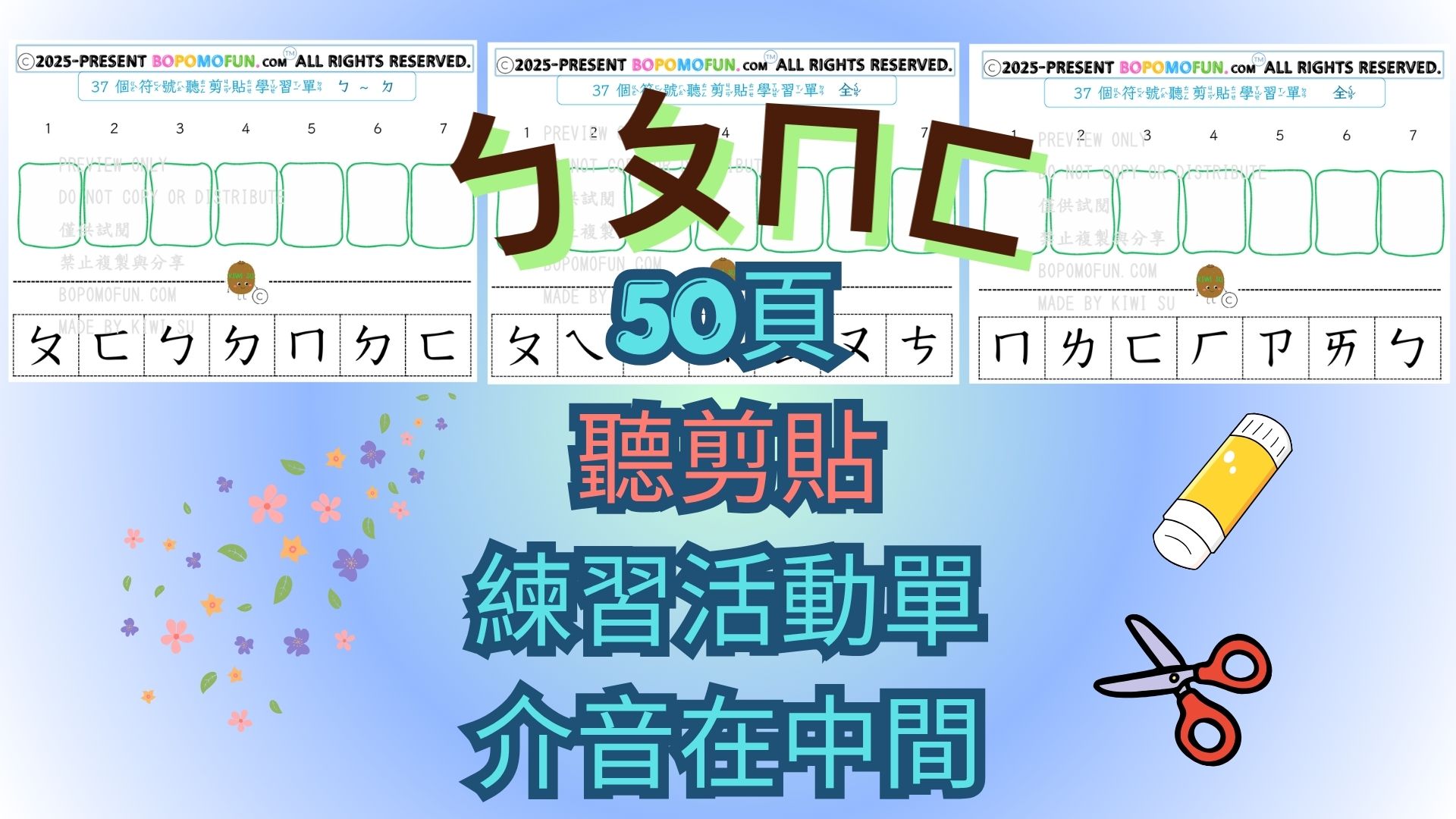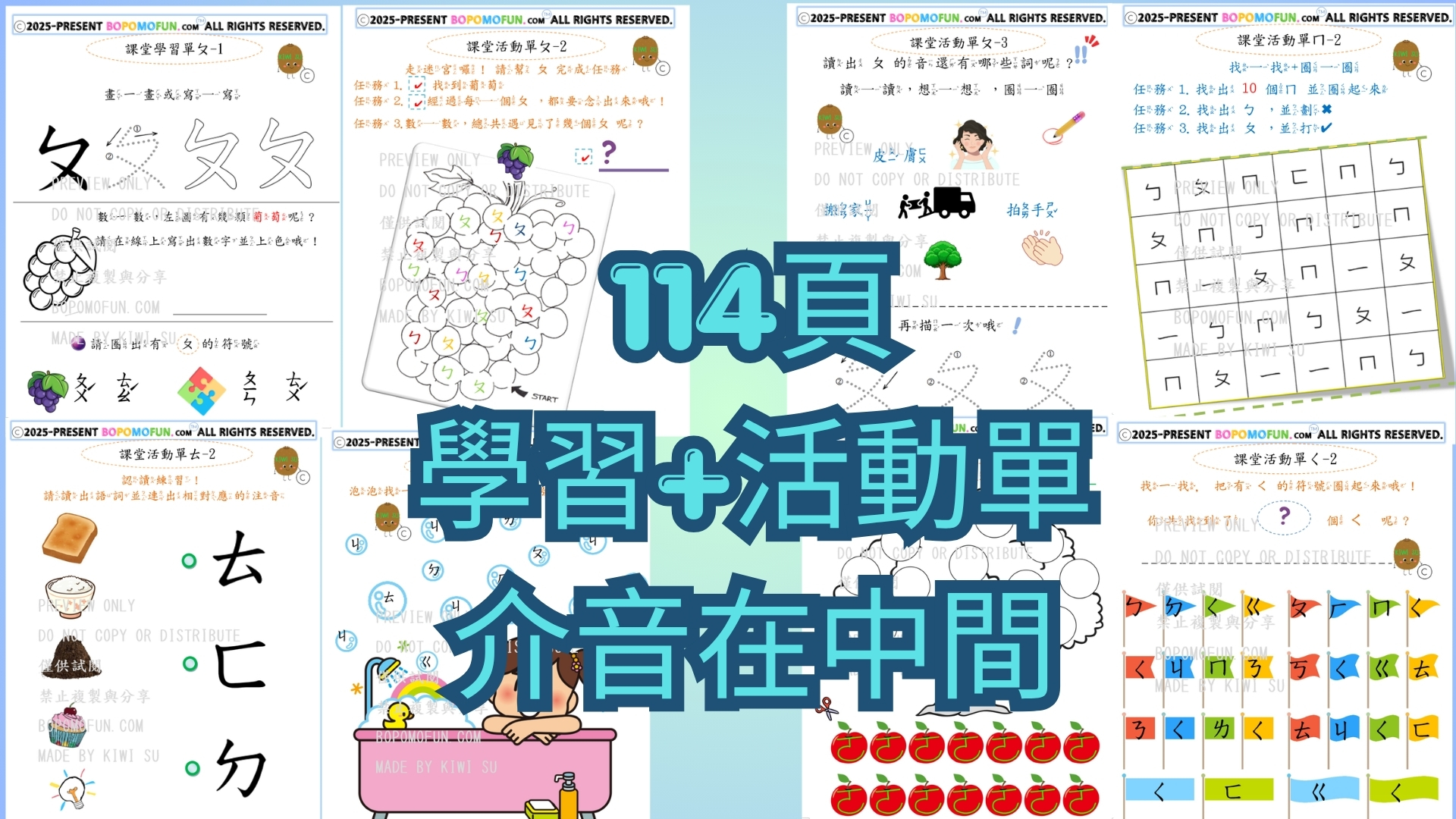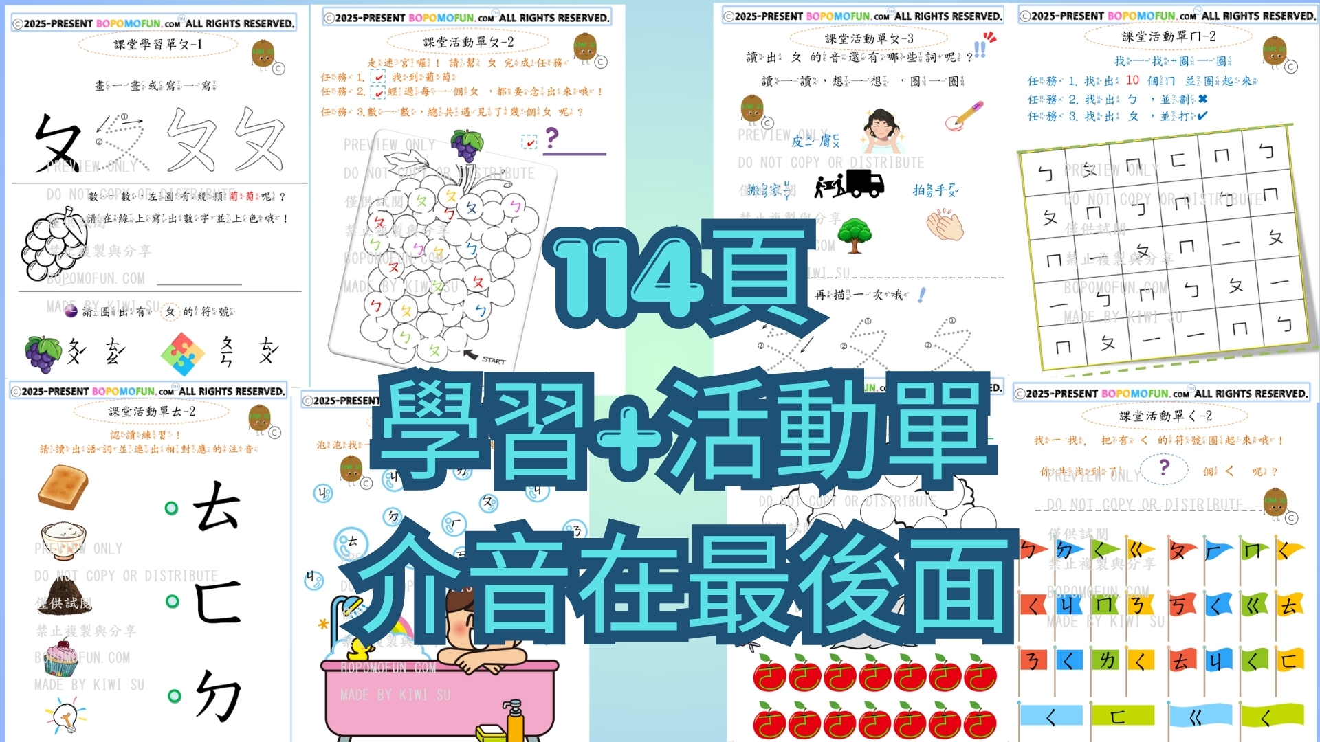 一套搞定37個注音符號ㄅㄆㄇ 📘學習內容 ✔系統性學習-完整排序 ✔ 圖像聯想學習(記得更快) 結合可愛圖示+聲音聯想 ✔正確筆順練習(從一開始就寫對) ✔學習單中融入數字練習 ✔建立「看得懂+唸得出」的能力 ✔多元互動練習 (提高專注力與興趣) ✔ 迷宮活動(提升專注力) ✔ 找一找符號(視覺辨識) ✔ 畫一畫符號(加深記憶) ✔ 連一連符號(建立對應關係) ✔ 剪剪貼貼(動手學習) ✔ 聽力訓練-搭配聽力練習