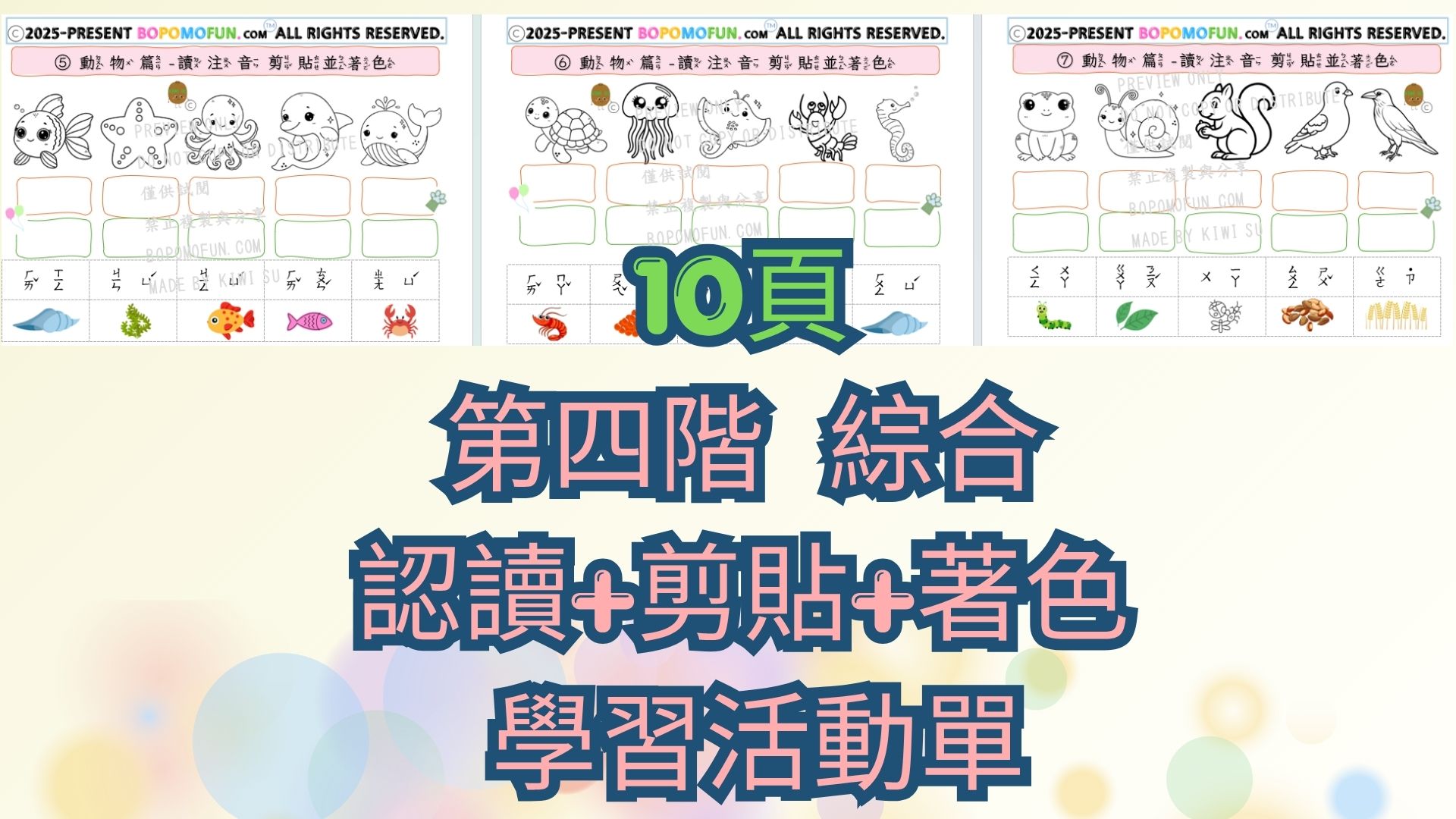 D09 提升拼讀練習 主題式 動物認讀+剪+著色