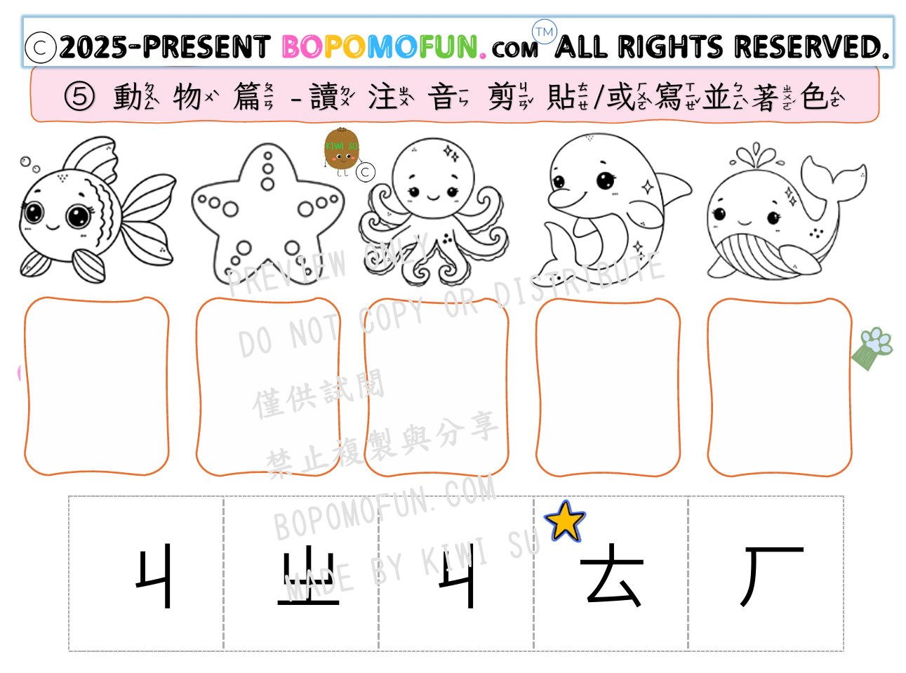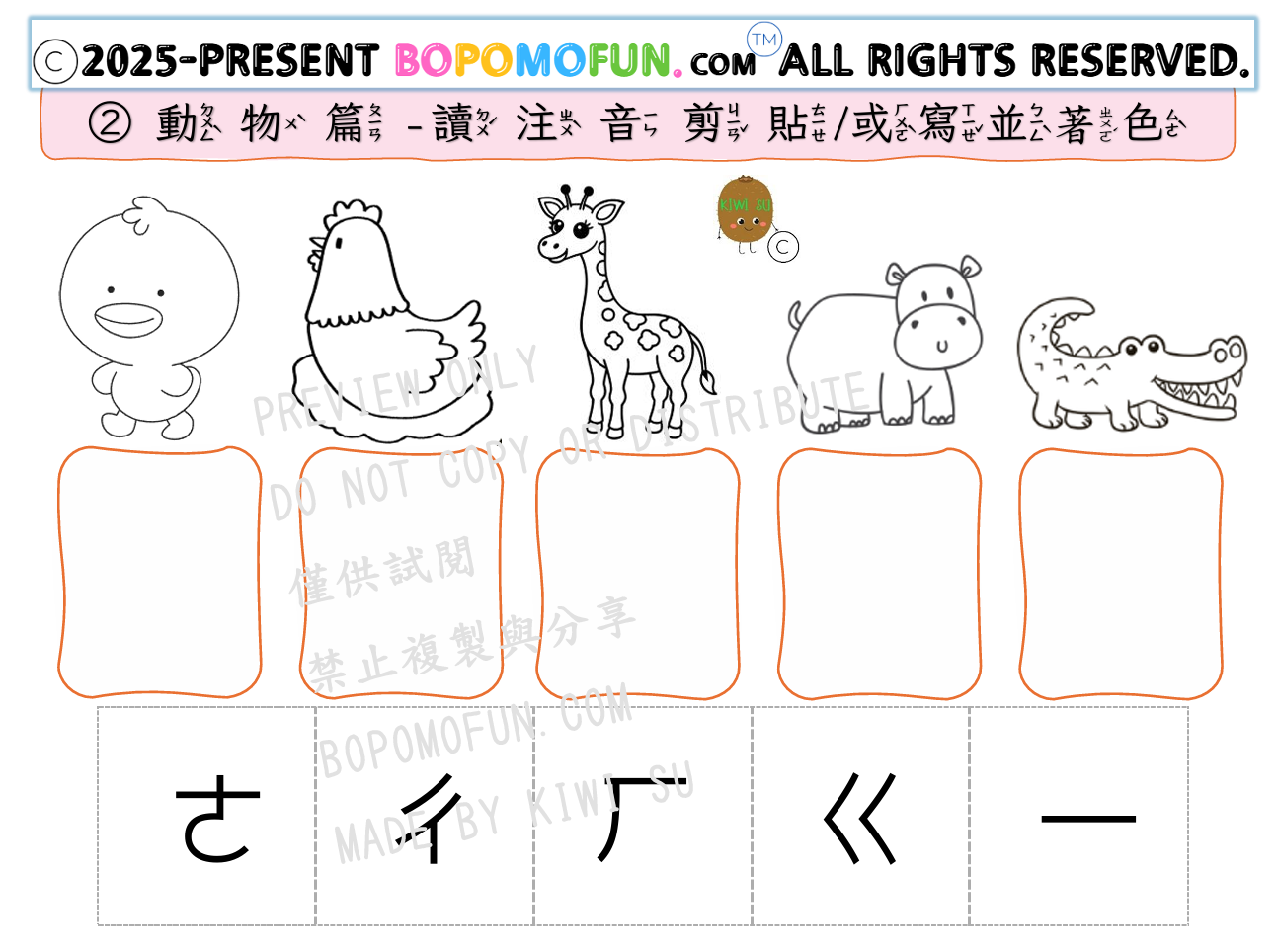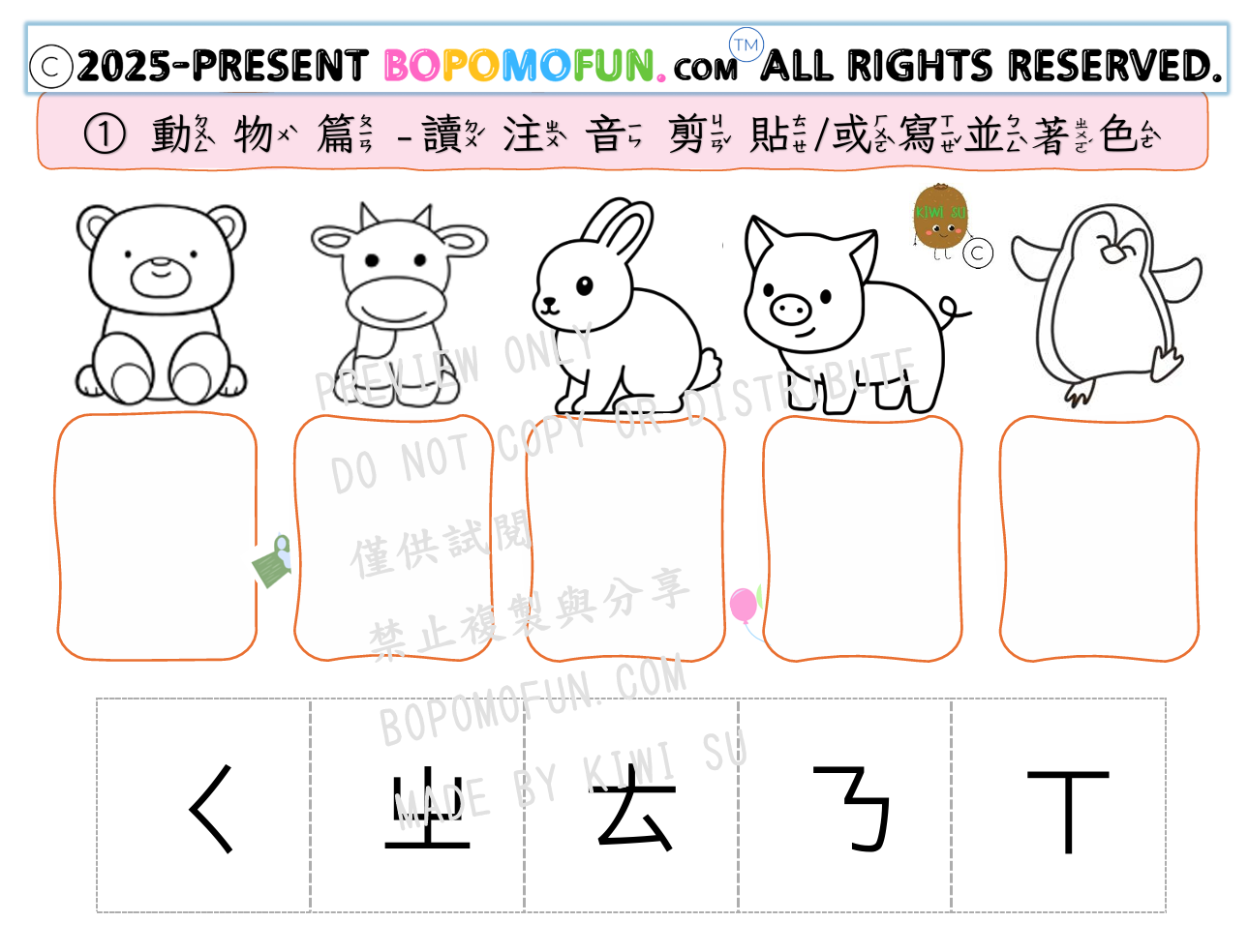 🌟結合動物主題與注音符號學習的練習單 ✔ 動物主題設計,提升學習興趣 ✔ 建立「名稱 × 首音符號」連結 ✔ 結合著色活動,增加參與感 ✔ 在遊戲中自然複習注音符號