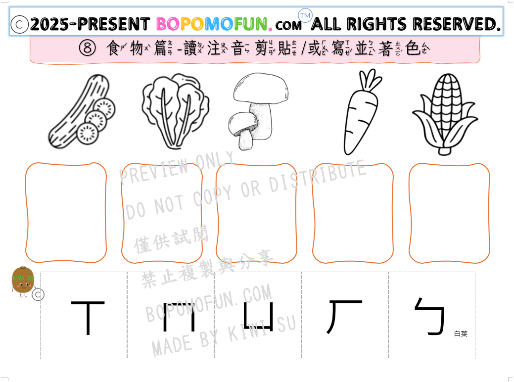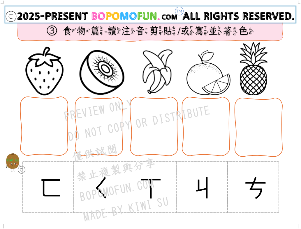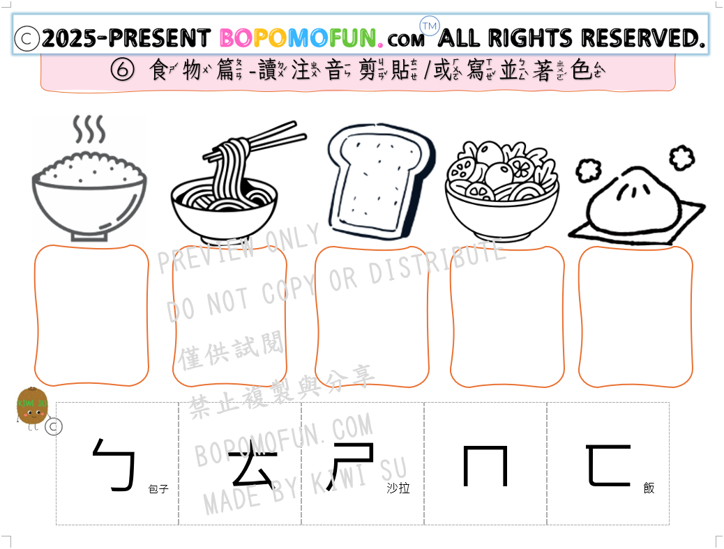 A06第一階③練習活動 食物著色單-辨識食物認符號