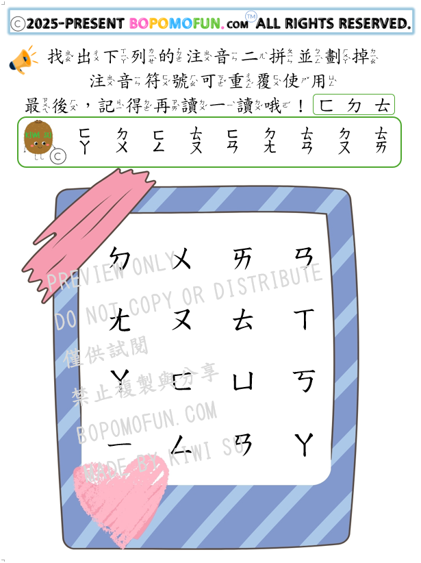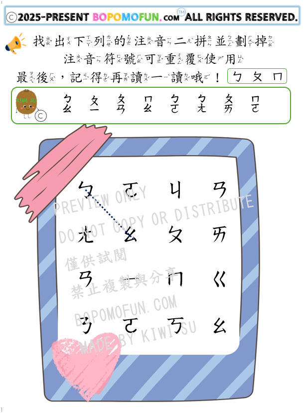 🌟 學習設計重點 ✓ 完成二拼學習單後,重複練習 ✓ 加強對二拼的熟悉度與拼讀速度 ✓ 強化發音準確度與符號辨識能力