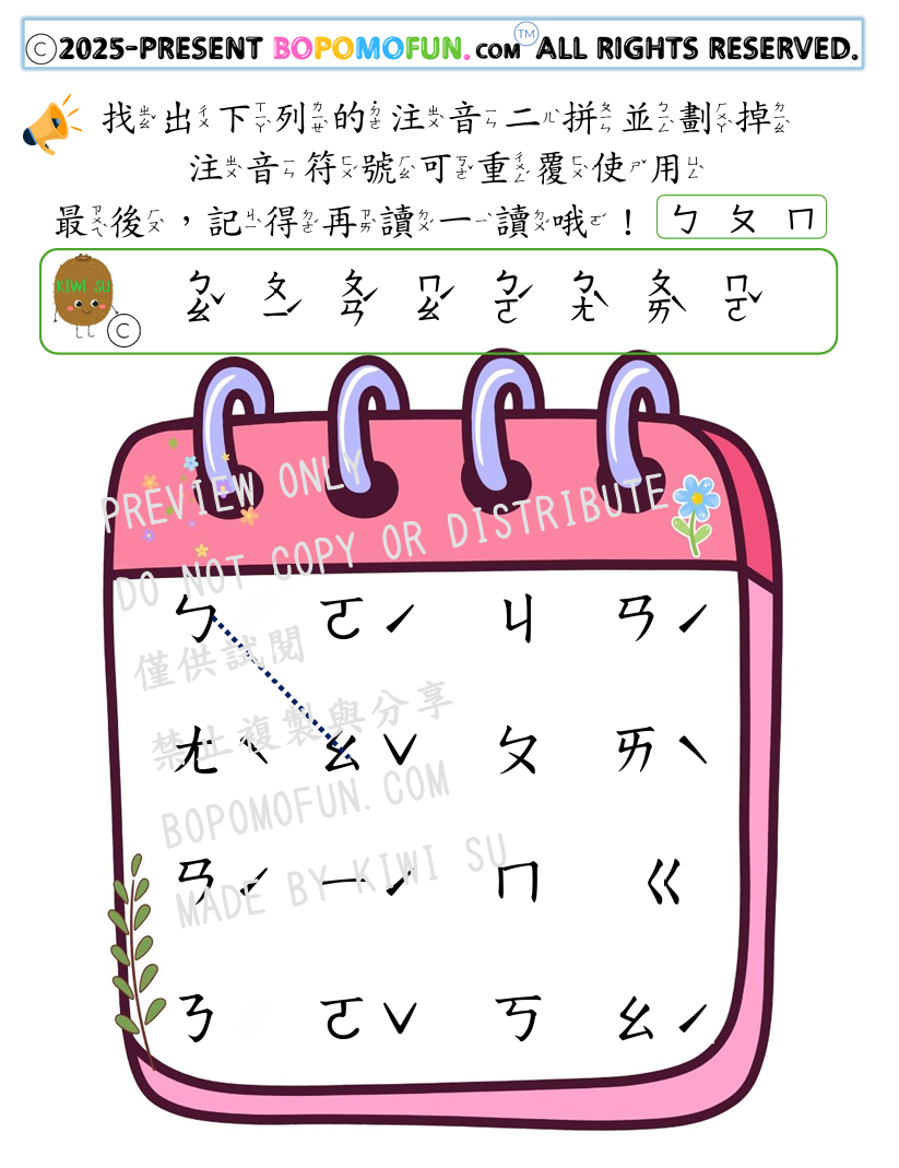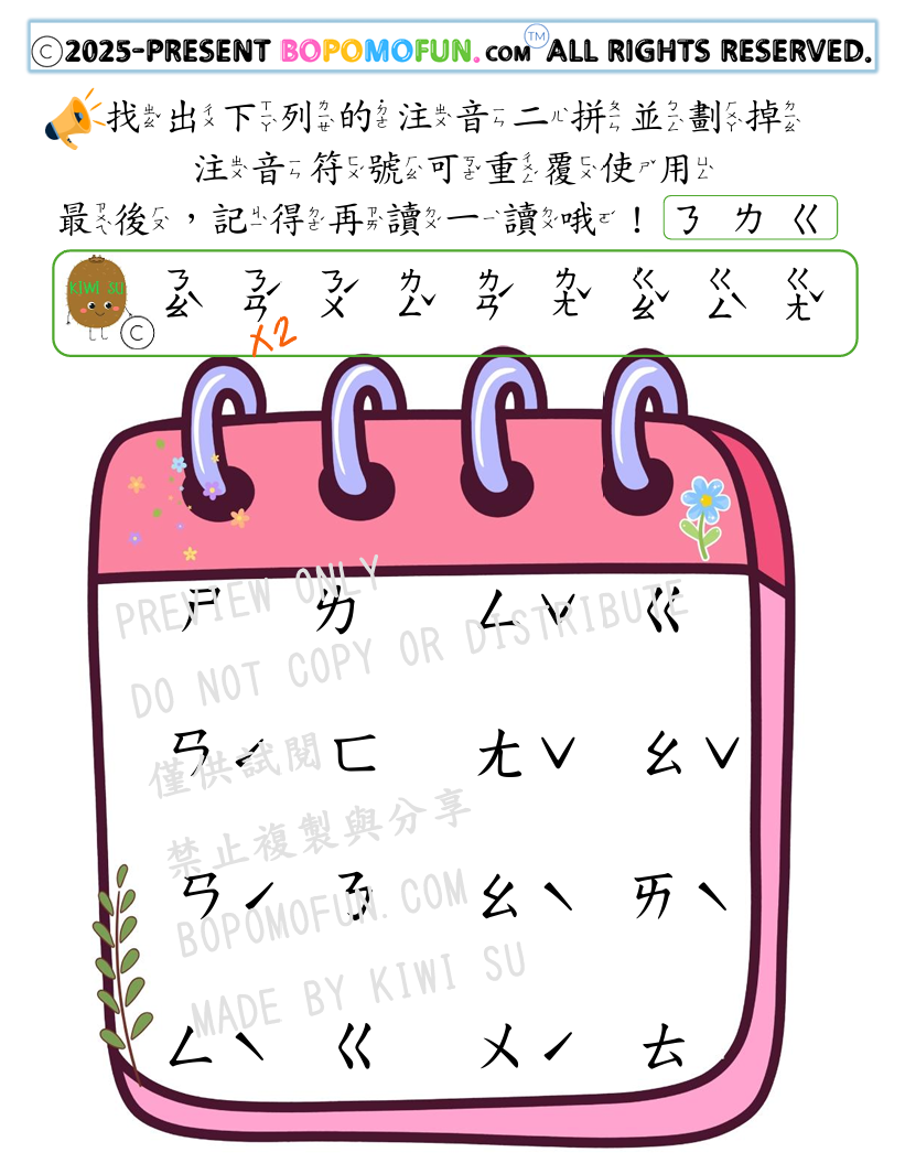🌟 學習設計重點 ✓ 完成二拼學習單後,重複練習 ✓ 加強對二拼的熟悉度與拼讀速度 ✓ 強化發音準確度與符號辨識能力