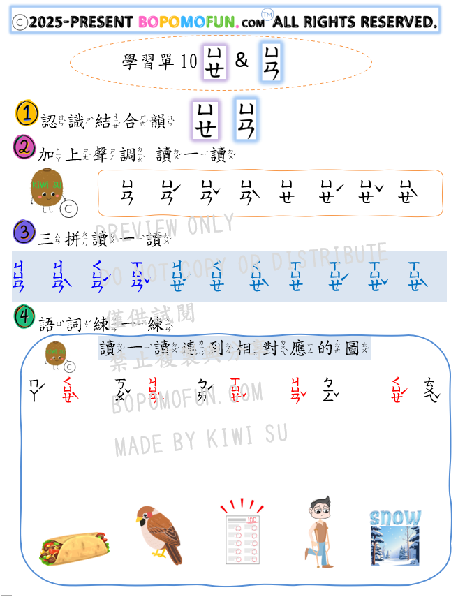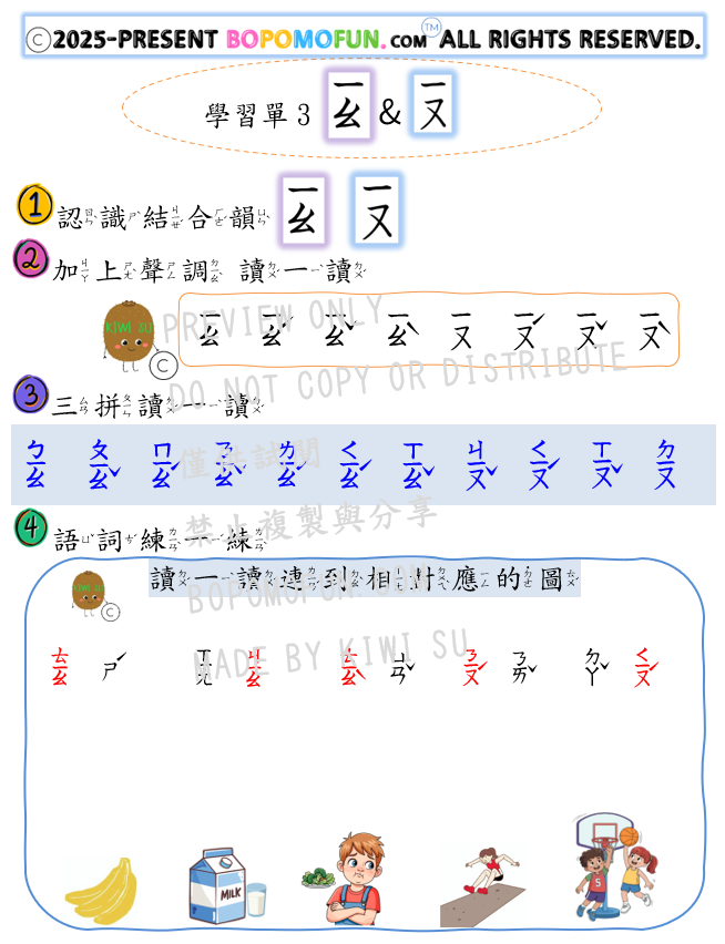 🌟 課堂設計重點 ✓從「ㄧ/ㄨ/ㄩ」結合韻開始,按順序學習 ✓ 結合常用圖示,提升對語詞拼讀與辨識能力