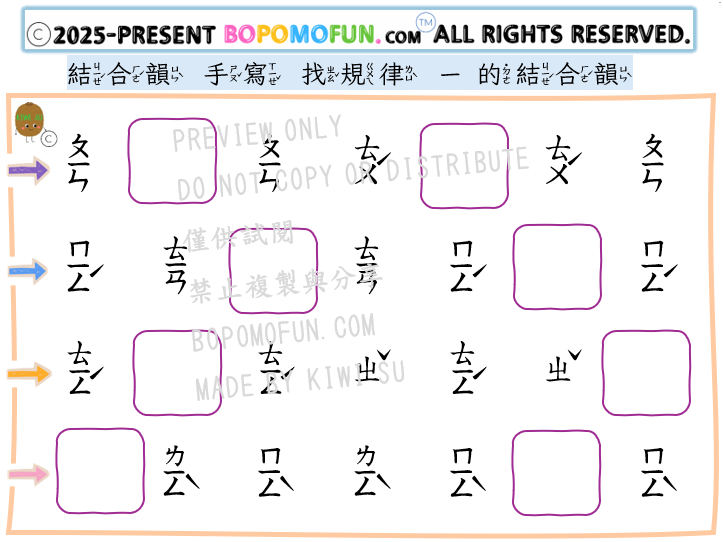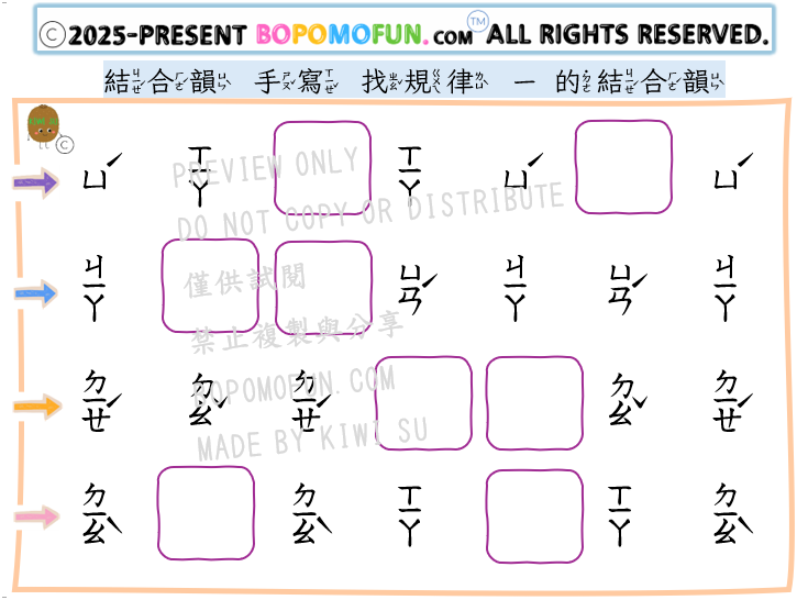 🌟 學習設計重點 ✓ 學完「一」結合韻的綜合練習 ✓ 提升語詞拼讀與辨識能力 ✓加強 認讀+拼寫