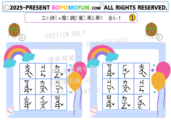C15 三拼 ② 綜合賓果三乘三(加聲調)
