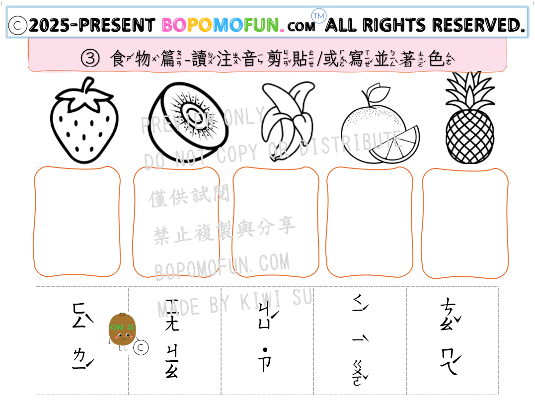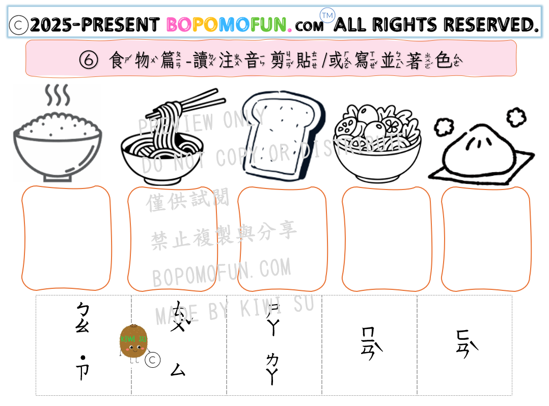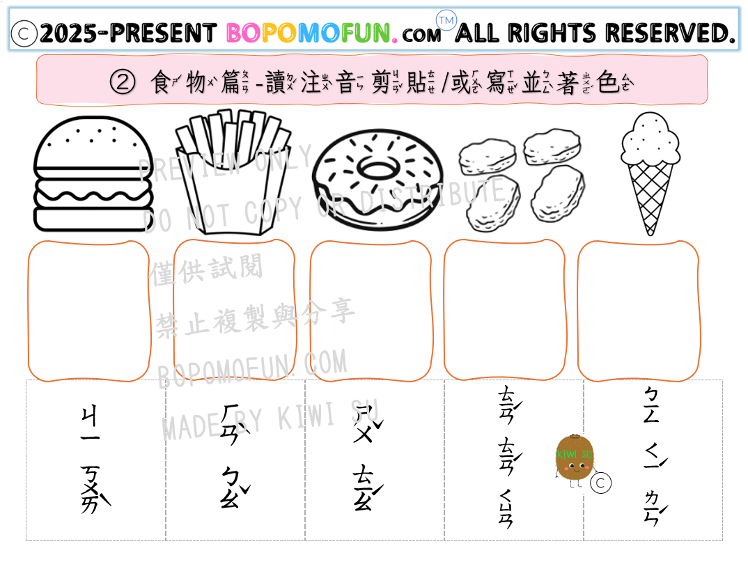 D11 提升拼讀練習 食物篇 認讀+著色